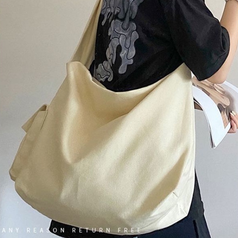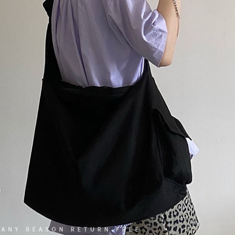 Ins New Female Student Korean Canvas Messenger Bag Casual Lazy Wind Shoulder Bag Joker Large Capacity Handbag