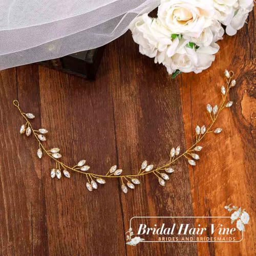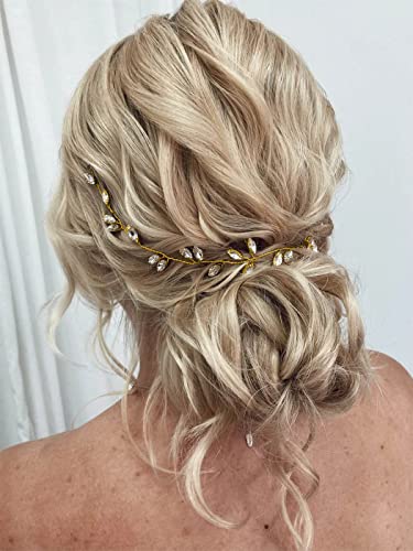 JAKAWIN Bride Rhinestone Wedding Hair Vine Crystal Hair Piece Bridal Headpiece Hair Accessories for Wome HV190 (2 Gold)
