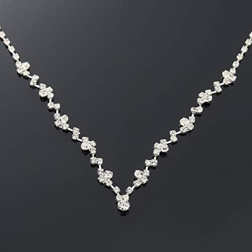 JAKAWIN Bride Wedding Jewelry Set Silver Bridal Necklace Earrings Set Crystal Rhinestone Necklace for Women NK330