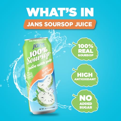 Soursop Juice with Pulp (Guanabana), 16.9 oz (Pack of 12) JANS | 100% Pure Soursop Graviola | NO Sugar Added, NOT From Concentrate, Fat-Free, Cholesterol-Free, Refreshing Taste of the Tropics