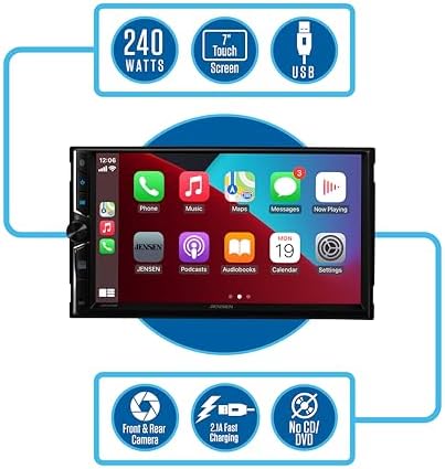J3CA7W 7-inch Certified Apple CarPlay Android Auto Wired or Wireless | Double DIN Touchscreen Car Stereo Radio | Bluetooth | Backup Camera Input | USB Playback & Charge