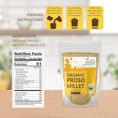 Jiva Organics Proso Millet 2 LB Bag | Whole Grain, Gluten-Free & Organic | High Protein & Fiber-Rich Superfood for Indian Cooking
