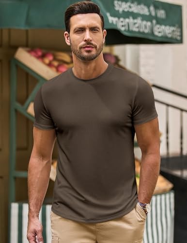 Sponsored Ad - Mens Short Sleeve T Shirt Summer Muscle Slim Fitted Crewneck Longline Tees Shirts for Gym Workout