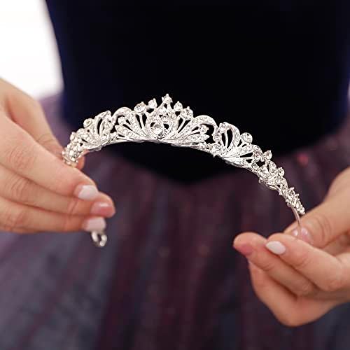 JWICOS Silver Wedding Tiara for Women Princess Crowns and Tiaras for Bride Rhinestone Birthday Crown Headband Crystal Costume Party Prom Hair Accessories
