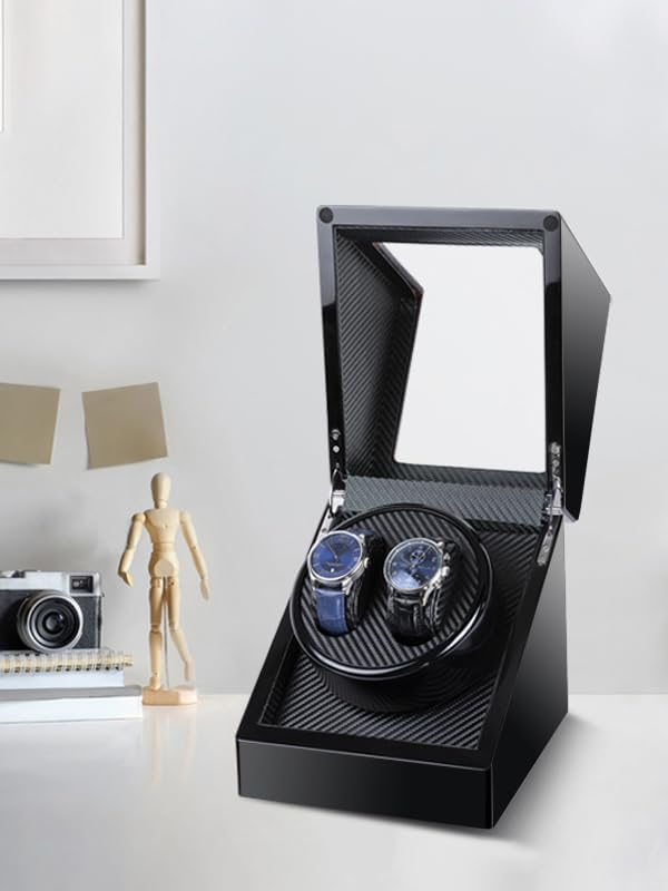 Watch Winder for Rolex, Automatic Watch Winder Box, Double Watch Winder with Japanese Quiet Motor Battery Powered or AC Adapter Black