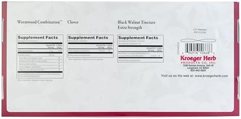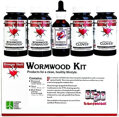 Kroeger Herb Products, Wormwood Herb Supplement Kit, Black Walnut, Clove, Quassia, Worm Wood Detox Cleanse - Capsules, Non-GMO, Gluten Free, No Preservatives or Fillers, Made in USA