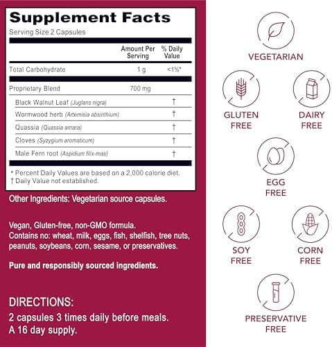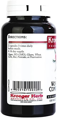 Sponsored Ad - Kroeger Herb Products, Wormwood Herb, Black Walnut, Clove, Quassia, Worm Wood Detox Cleanse - Wormwood Capsules, Non-GMO, Gluten Free, No Preservatives or Fillers - 200 Capsules, Made i