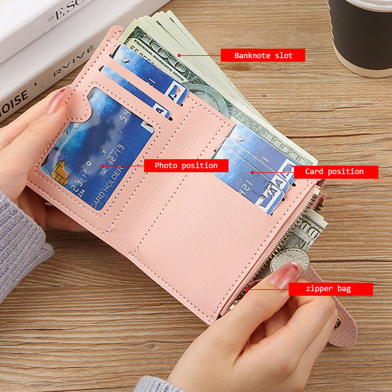 Ladies Wallet Large Capacity Buckle Coin Purse Foldable Multifunctional Clutch Multi-Zipper Card Holder