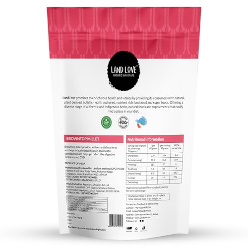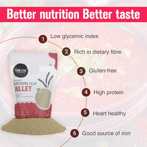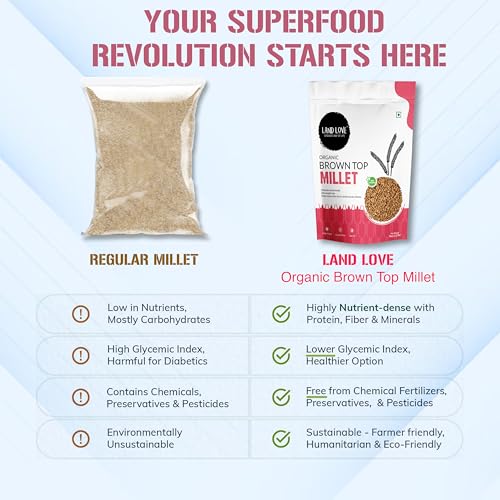 Land Love Browntop Organic Millet 2.2 lbs – High-Protein, Rich in Fiber Whole Grain Superfood, Gluten-Free, Vegan, Non-GMO, Plant-Based Pantry Essential.