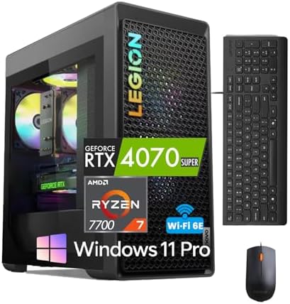 Legion Tower 5 Gen 8 Gaming Desktop, NVIDIA RTX 4070 Super 12GB GDDR6X, AMD Ryzen 7700, Wi-Fi 6E, Bluetooth 5.3, Win 11 Pro, Keyboard & Mouse, 32 GB DDR5, 2 TB SSD