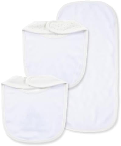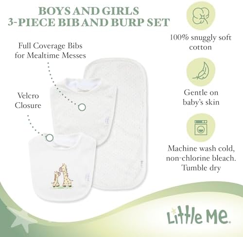 Little Me Clothes for Baby Boys’ and Girls’ 2 Bibs and 1 Burp Cloth Set, Soft Cotton Feeding Essentials with Velcro Closures
