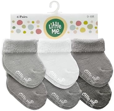 Little Me Baby Socks – 6-Pack Terry Turn Cuff Socks for Newborns, Infants & Babies, 0–6 Months
