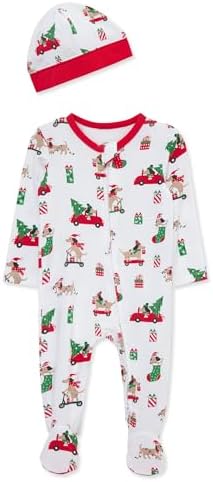 Little Me Clothes for Baby Gender Neutral Viscose from Bamboo Zipper Closure Holiday Footie Pajamas, Newborn to 9 Months