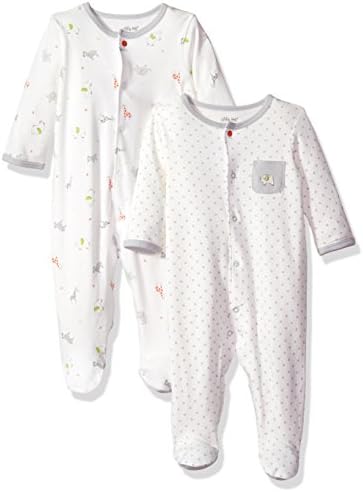 Little Me Baby Boys' and Girls' 2pc 100% Cotton Side Snap Romper Sleeper Footies