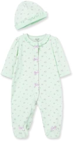 Clothes for Baby Girls 100% Cotton Scratch-Free Tag Footed One-Piece Romper and Hat Sleeper Set Preemie to 9 Months