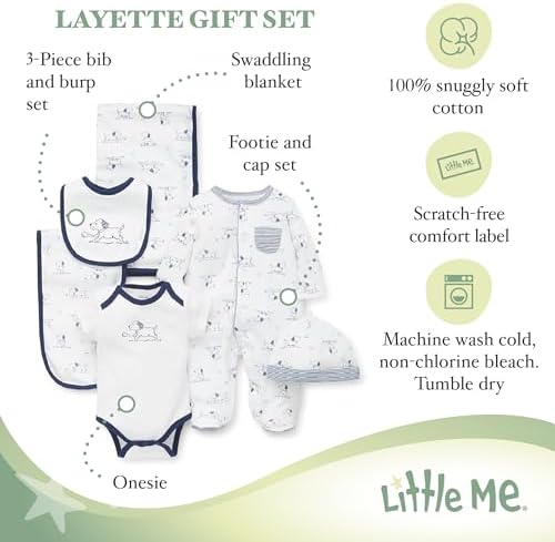 Little Me Baby Layette Gift Set - Footie and Cap, Onesie, 3-Piece Bib And Burp Set, Swaddling Blanket, Baby Shower Gifts