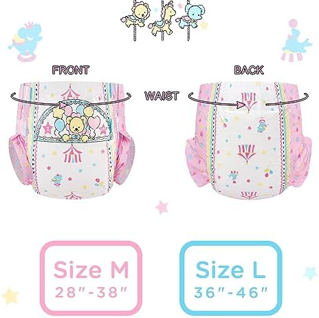 Adult Printed Diaper 10 Pieces - Little Circus (Large 36"-46")