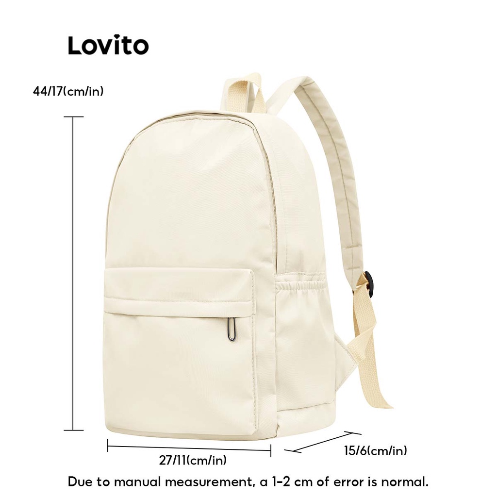 Lovito Preppy Plain Colorblock Double Shoulder Strap Multi-pocketed Backpacks L41BA05 (White/Pink/Blue/Black)