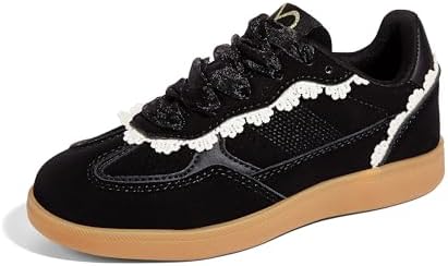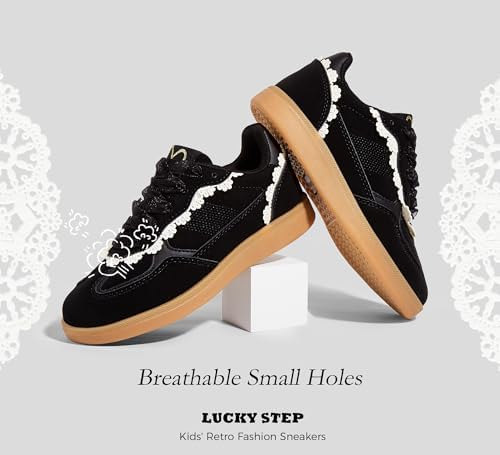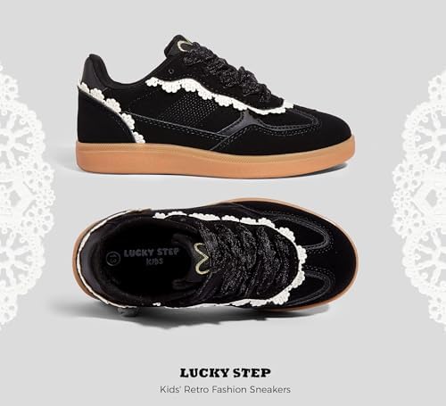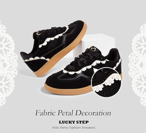 Sponsored Ad - Kids Lace Detail Fashion Retro Sneakers Girls Casual Gum Rubber Sole Dual Laces Walking Running Shoes for Big&Little Kid and Toddler