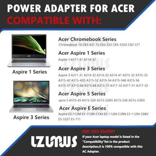 Sponsored Ad - 45W AC Adapter Charger 19V 2.37A 5.5x1.7mm for Acer Laptop Adaptor Aspire P255 v15 5750 1400 A045R021L for Aspire 3/5 Series Power Supply