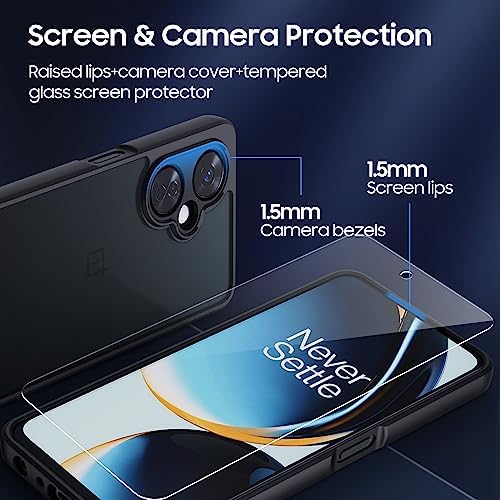 for OnePlus Nord N30 5G Case with Glass Screen Protector, Non-Yellowing Translucent Matte Shockproof Bumper Case, Slim Thin Yet Military Grade Drop Proof Phone Cover