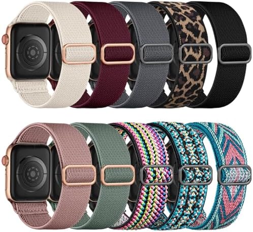 10 Pack Stretchy Solo Loop Compatible with Apple Watch Band 40mm 38mm 41mm 42mm 44mm 45mm 46mm 49mm Women Men,Soft Nylon Elastic Braided Strap for iWatch Series 11 10 9 8 7 6 5 4 3 2 1 SE Ultra