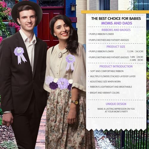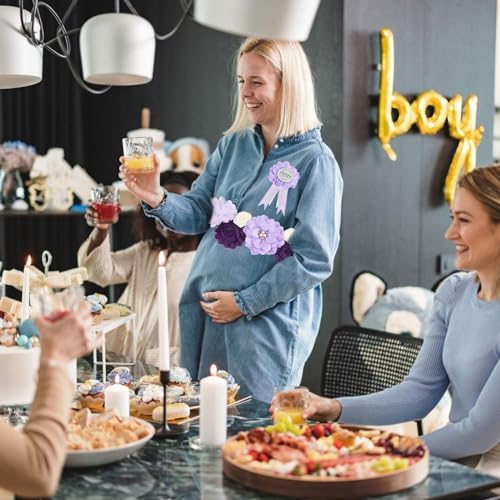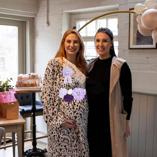 Maternity Sash and Corsage Pin Kit, Violet Baby Shower Decorations Corsage Pin and Flower Maternity Sash for New Mommy and Daddy Pregnancy Photo Props Supplies