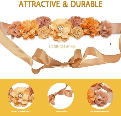 Maternity Sash and Corsage Pin Kit, Brown Gold Baby Shower Decorations Corsage Pin and Flower Maternity Sash for New Mommy and Daddy Pregnancy Photo Props Supplies(Pure handmade)