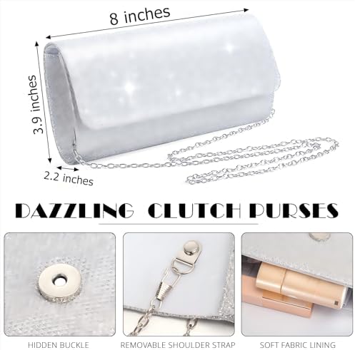Sponsored Ad - Meanplan 4 Pcs Silver Clutch Purse Jewelry Set for Women Evening Rhinestone Purse Silver Accessories for Women Bride Wedding Jewelry