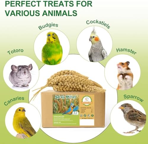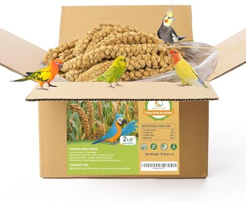 2LB Spray Millet Bird Treat for Parakeets, Natural Sun-Dried Birds Millet Spray for Parrots, Finches, Cockatiel, Budgie & Hamster, Bird Food Bulk
