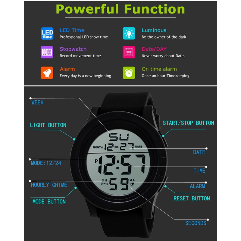 Quality:For such a cheap price, this is a fantastic watch. All functions like regular time, alarm, stopwatch and timer are available and working perfectly??? The battery should last at least a half year for this digital display. Can buy from this trusted & reliable Seller. I love this watch with BIG BIG Digital Display. ?❤️????????