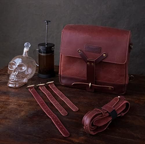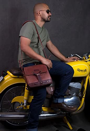 Full Grain Leather Messenger Bag Handmade Vintage Unisex Cross Body Motorcycle Mount Saddlebag With Adjustable Shoulder Strap