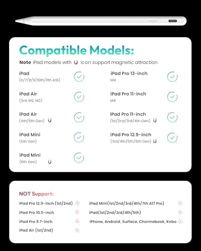 Pencil A8 for Apple iPad 2018-2025, (2X Faster Charge), Tilt Sensitivity, Pixel Precision, Stylus Pen for iPad 11/10/9/8/7/6th Gen, Pro 12.9/11/13-inch M4, Air 3/4/5/M2/M3, Mini 5/6th, White