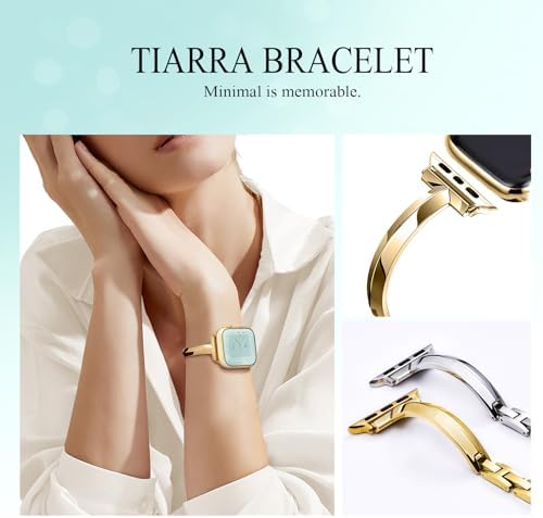 Thin Band Compatible with Apple Watch 38mm 40mm 41mm 42mm 44mm 45mm 46mm 49mm for Women, Slim Bracelet Designer Dressy Stainless Steel Metal Strap for iWatch Series 11 10 9 8 7 6 5 4 SE Ultra
