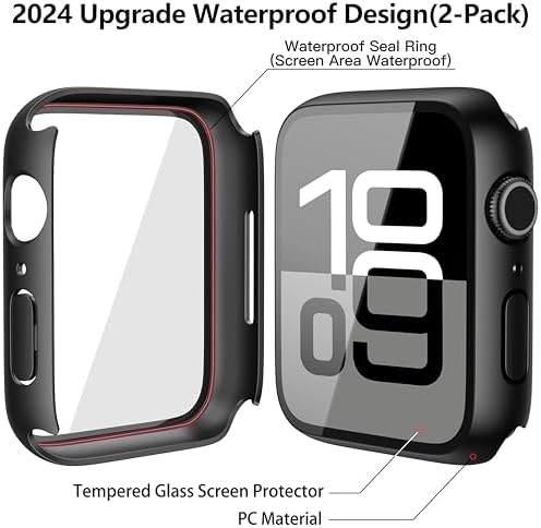 [2 Pack] Waterproof Hard Case with Tempered Glass Compatible with Apple Watch Series 11 (2025) Series 10 46mm, Ultra-Thin Anti-Fall Protective Cover for iWatch Screen Protector, Matte Black