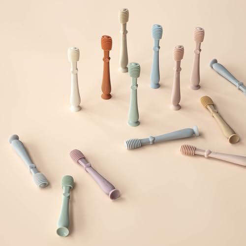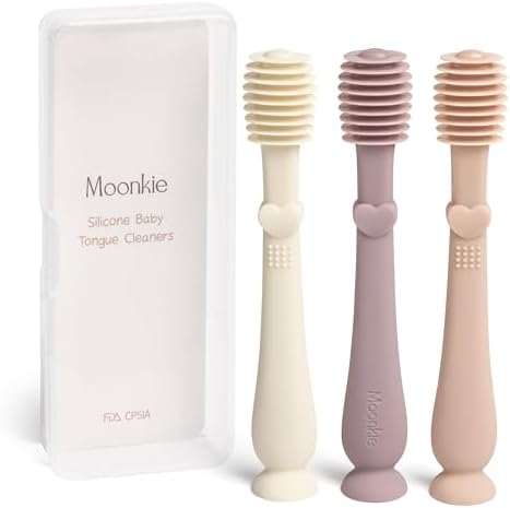 Moonkie Baby Tongue Cleaner, Toddler Toothbrush, Baby Oral Cleaner Newborn Kit for 3 Months+, 3 Pcs (Blush/Pale Mauve/Ivory)