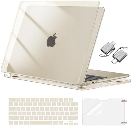 Compatible with MacBook Air 13 inch Case 2025 2024 2023 2022 M4 A3240 M3 A3113 M2 A2681, Plastic Hard Shell&Keyboard Cover&Screen Film&Type C for MacBook Air 13.6 inch Case, Crystal Starlight