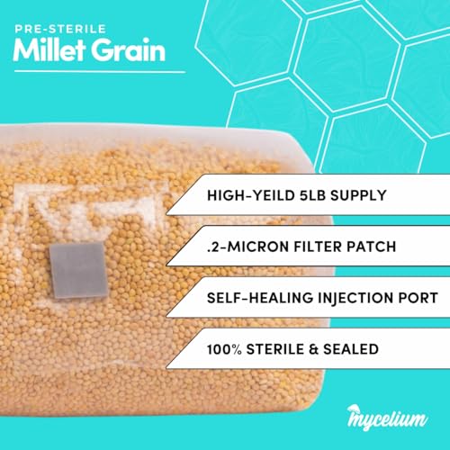 Mycelium 5 lb Millet Mushroom Grain Spawn | Pre-Sterilized Bag with Self-Healing Injection Port – Ideal for Fast, Clean Mycelium Growth | Ready to Inoculate for At-Home Cultivation | Made in USA