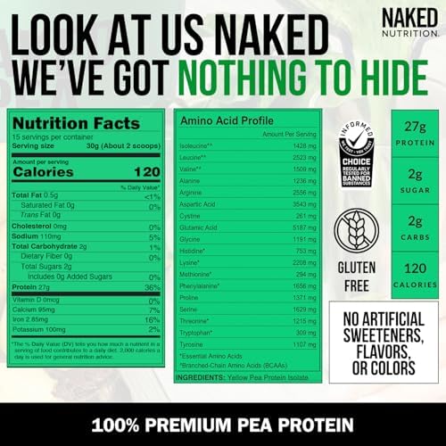 Naked Pea - Pea Protein Isolate - Plant Based, Vegetarian & Vegan Protein. Easy to Digest, Non-GMO, No Lactose, No Soy and Gluten Free - 15 Servings