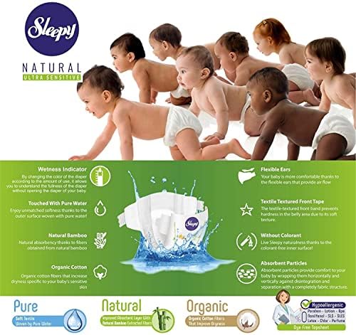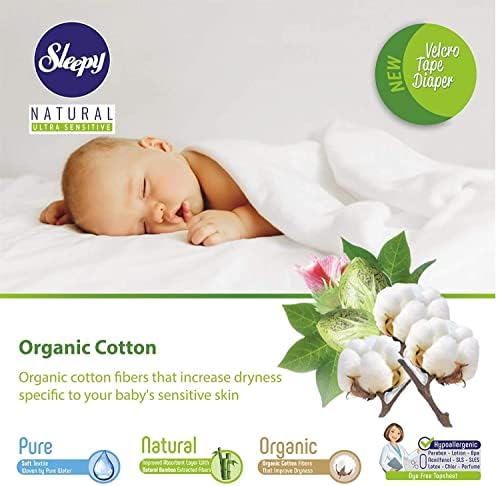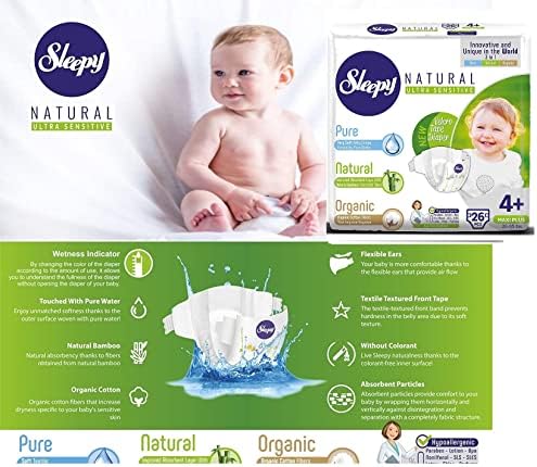 SOHO | Sleepy Natural Baby Diapers, Made from Organic Cotton and Bamboo Extract, Ultimate Comfort and Dryness, Disposable Diapers Snuggle Diaper (Size 4+ | 26 Count | Child Weight 20-35 lbs)