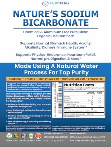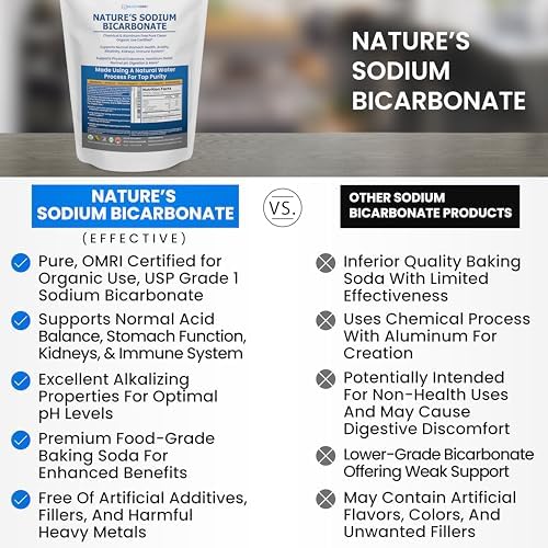 Nature’s Sodium Bicarbonate Organic Use Aluminum Free Baking Soda. No Chemical Pure Baking Soda Powder For Health & Wellness. Sodium Bicarbonate 1lb