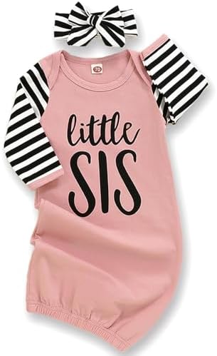 Newborn Baby Girl Little Sister Sleeper Gown Stripe Long Sleeve Nightgown Pajamas Gifts Stuff Essential Outfit