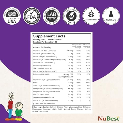 Sponsored Ad - Tall Kids - Toddlers Vitamins and Kids Vitamins for Age 2 to 9 - Support Bone Strength, Overall Health and Immunity - Animal Shapes - 90 Chewable Berry Tablets | 6 Weeks Supply