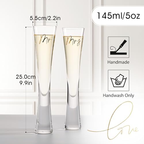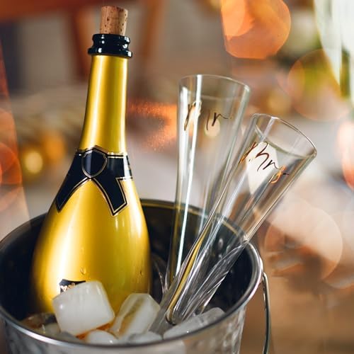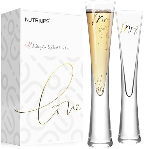 Sponsored Ad - NUTRIUPS Mr & Mrs Champagne Flutes, Wedding Toasting Flutes for Bride and Groom, Hand Blown Crystal Prosecco Glasses for Anniversary, Set of 2