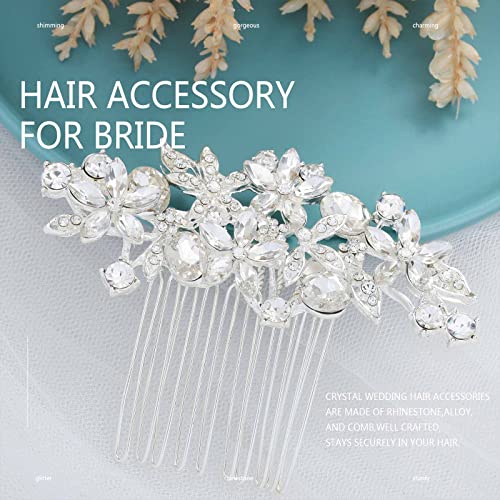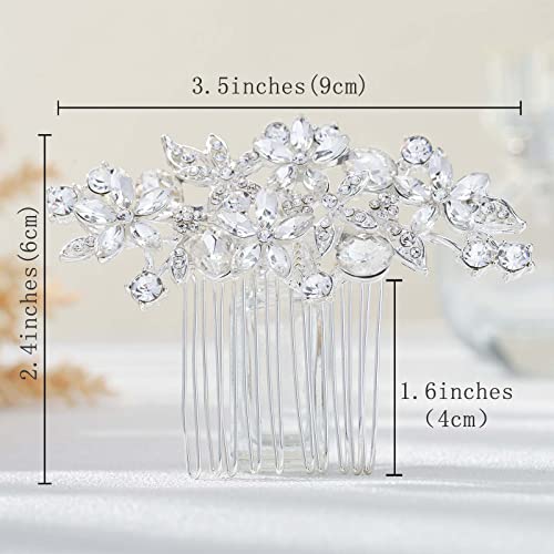 Olbye Wedding Hair Comb Rhinestone Bridal Pieces Flower Silver Crystal Headpiece for Bridesmaids and Brides (Silver)