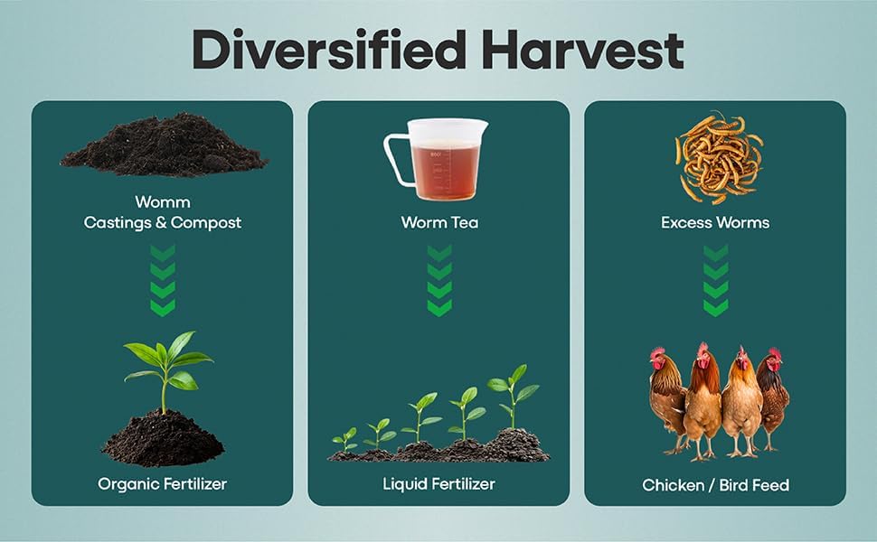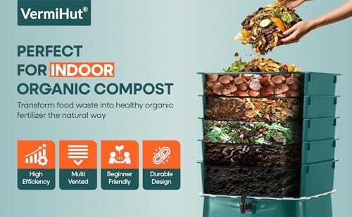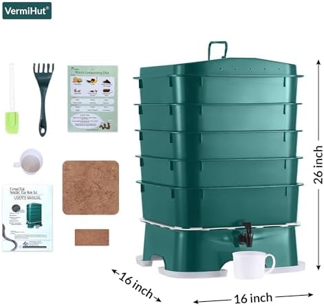 The Original Vermihut ® Plus 5 – Tray Worm Composter -Dark Green,Sustainable Design for Both Indoor & Outdoor, Worm Compost Bin for Vermicomposting Starter, Recycling Food Wastes