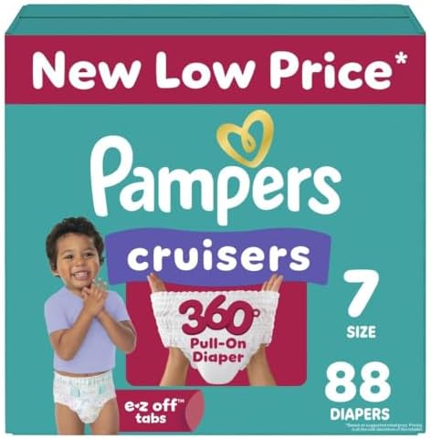 Pampers Diapers - Cruisers 360 - Size 7, 88 Count, Babyproof up to 100% Leakproof Pull-On Diaper