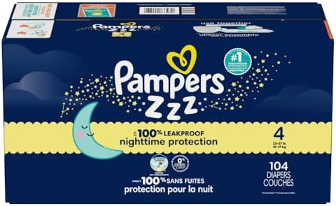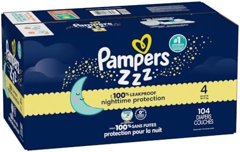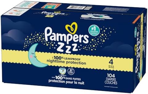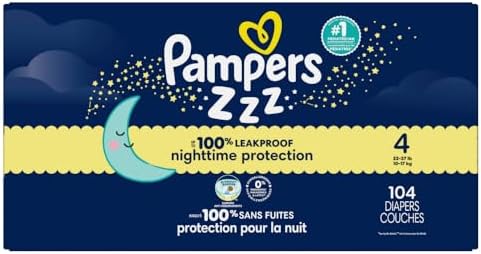 ZZZ Overnight Diapers, Size 4 (22-37 lbs), 104 Count, Nighttime Protection Disposable Baby Diaper, Night Time Leak and Skin Protection
