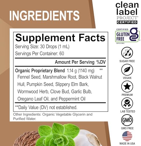 ParaGuard Cleanse Liquid Organic Detox - Organic Intestinal Guard Formula Supplement for Humans with Black Walnut Wormwood Clove & Oregano Tincture - Natural Herbal Intestine Body Gut Cleanser 2 oz