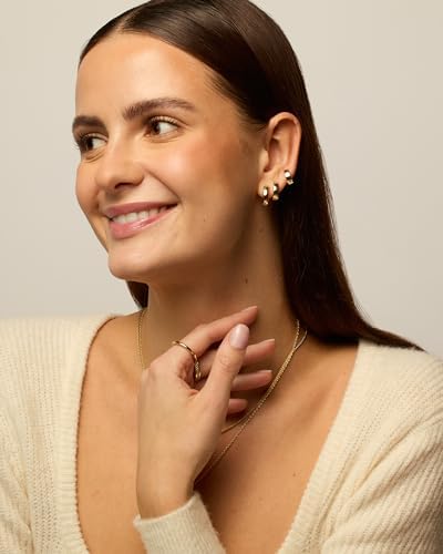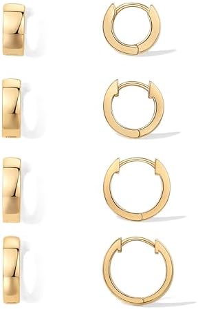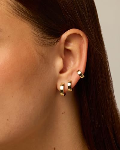 Sponsored Ad - PAVOI 18K Gold Plated Sterling Silver Posts Small Hoop Earrings for Women - Trendy Geometric Plain Chunky Huggie Earscape Piercing Pack - Everyday Gold Hoop Earrings Set